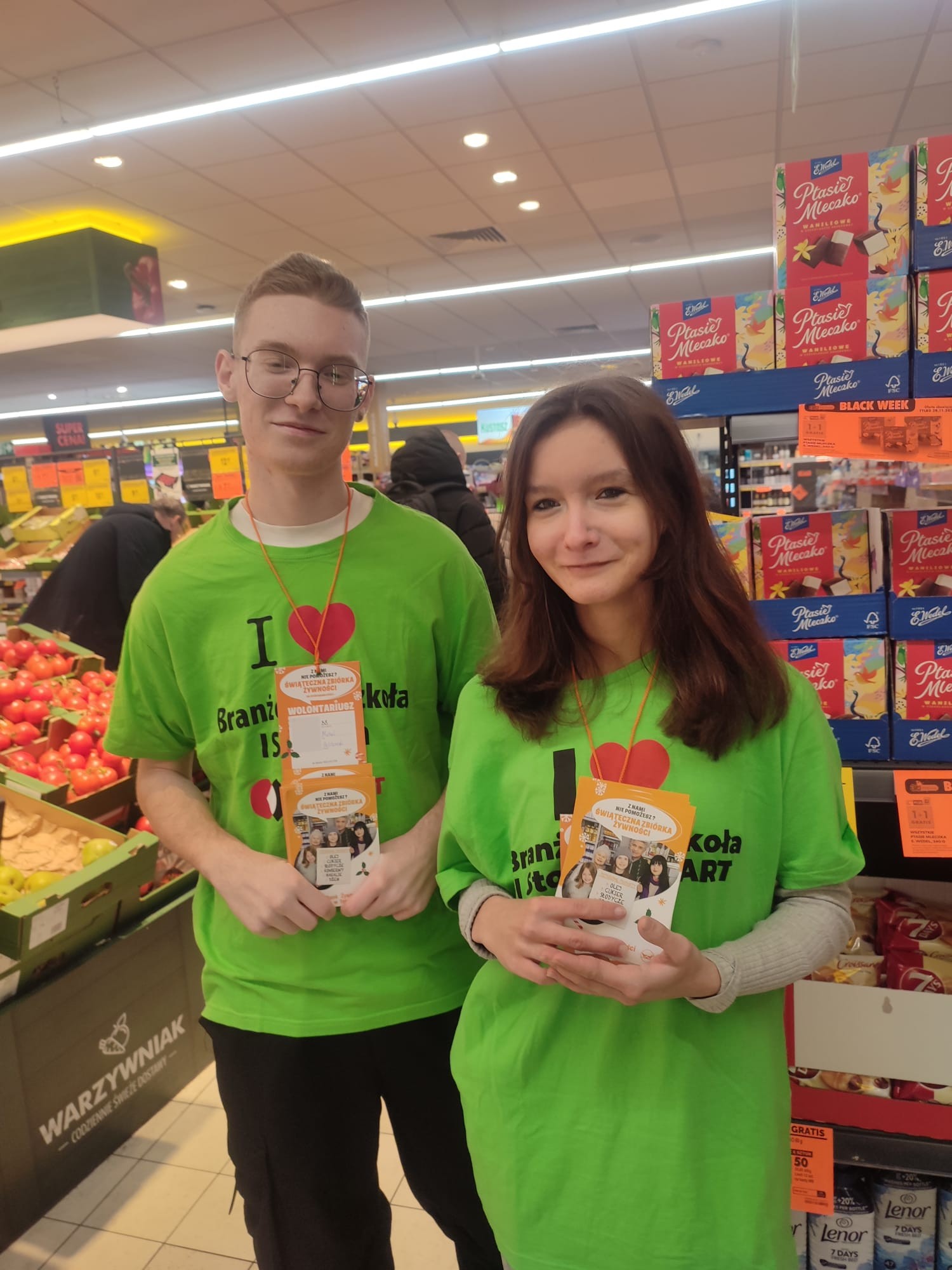 organizowanej przez Bank Żywności. Zachęcali kupujących do zakupu żywności, która zostanie przekazana osobom potrzebującym wsparcia, by zapewnić im godne święta.