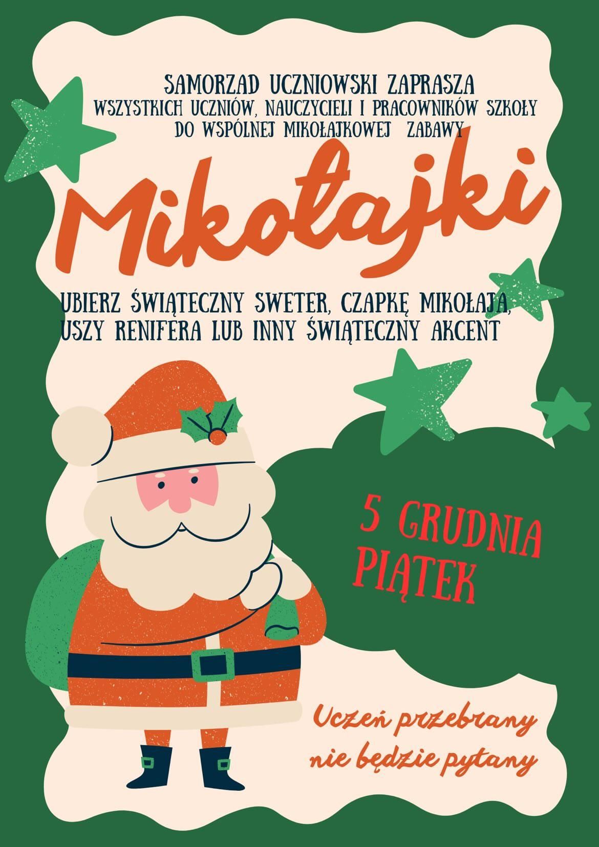 Z okazji Mikołajek SAMORZĄD UCZNIOWSKI zachęca do wzięcia udziału w mikołajkowej, piątkowej (5.12) akcji.